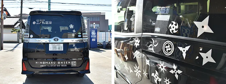 紀州 忍びの湯 二ノ丸温泉様(和歌山県有田郡)の営業車にカッティングシートを施工させていただきました。