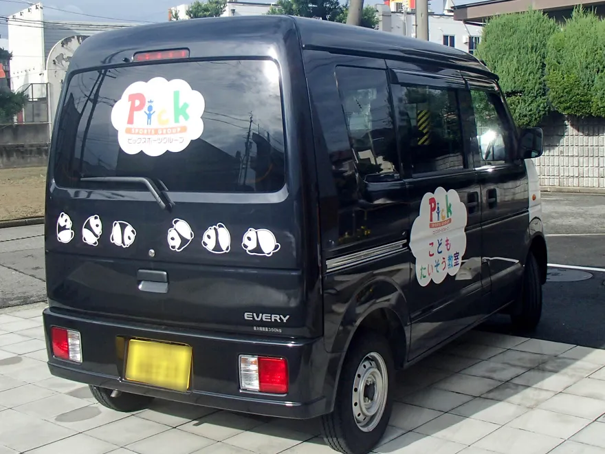 体操教室の車をカーラッピング|子供達に人気のパンダカー