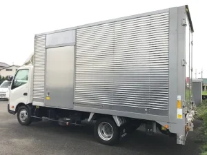 2tトラックの両側面コルゲート(波板部分)を部分ラッピングさせて頂きました。